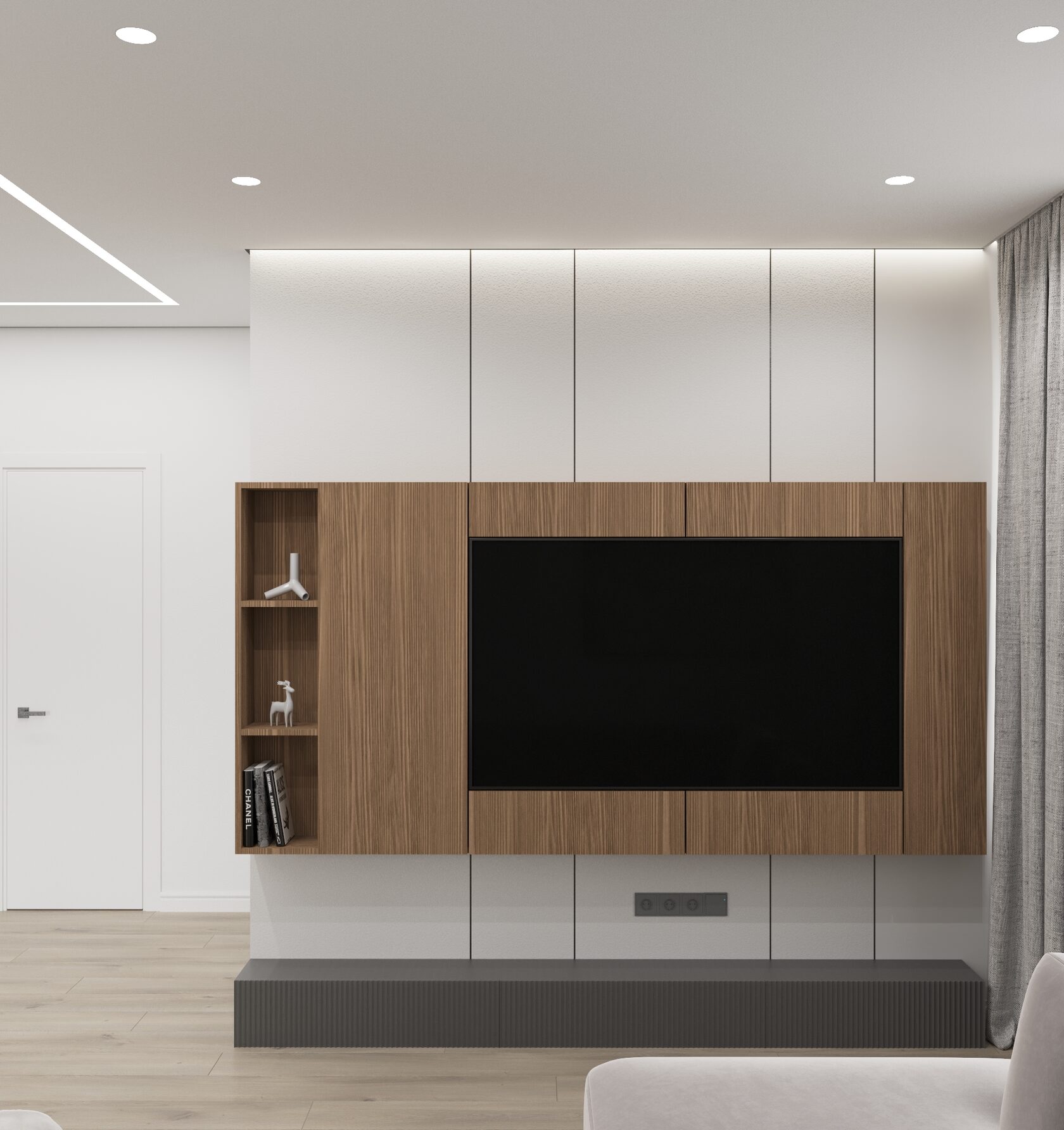 уютная гостиная зона с диваном и ТВ-пространством для отдыха
