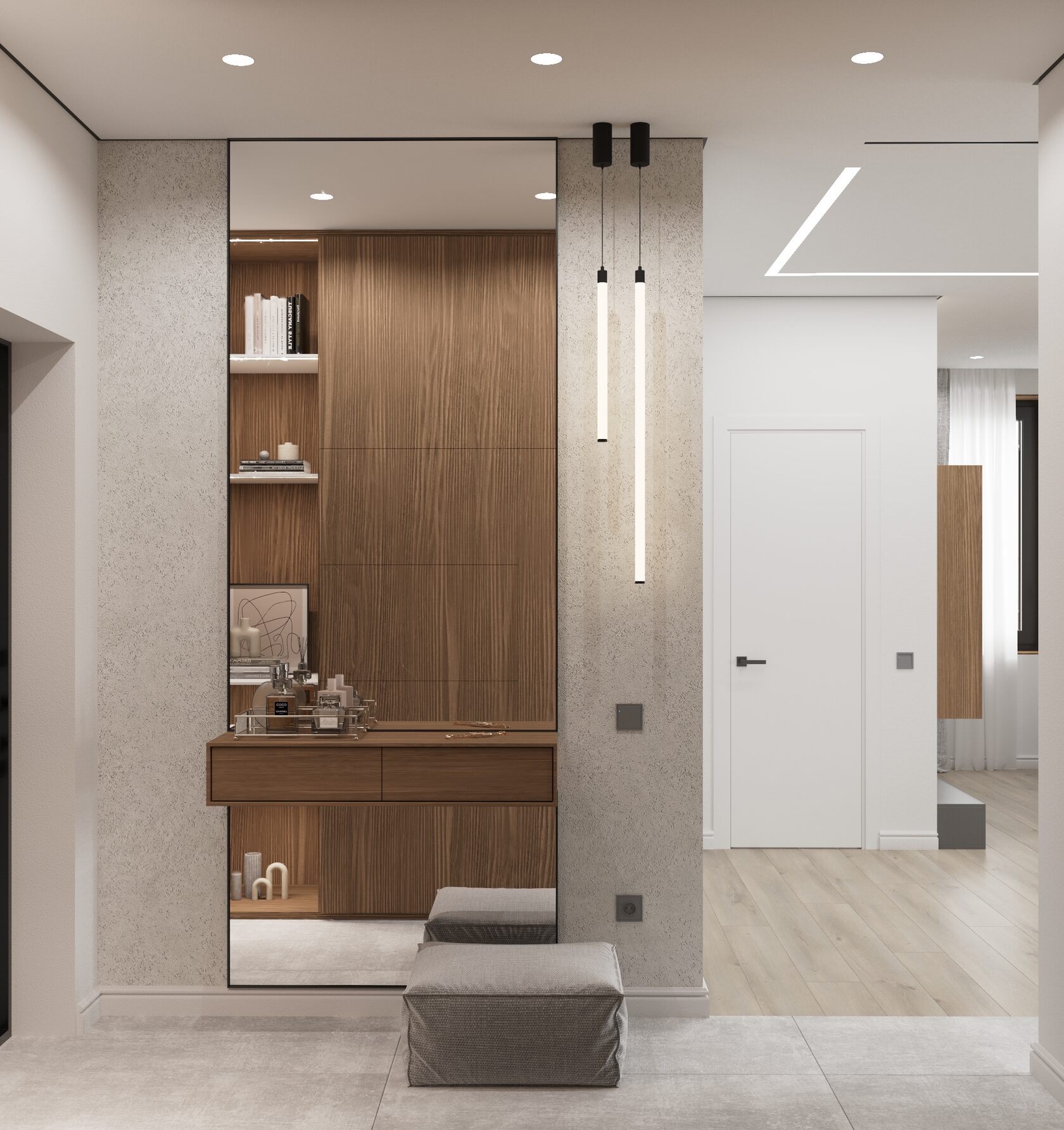 удобная прихожая с вместительными системами хранения, зеркалом и зоной для повседневного комфорта